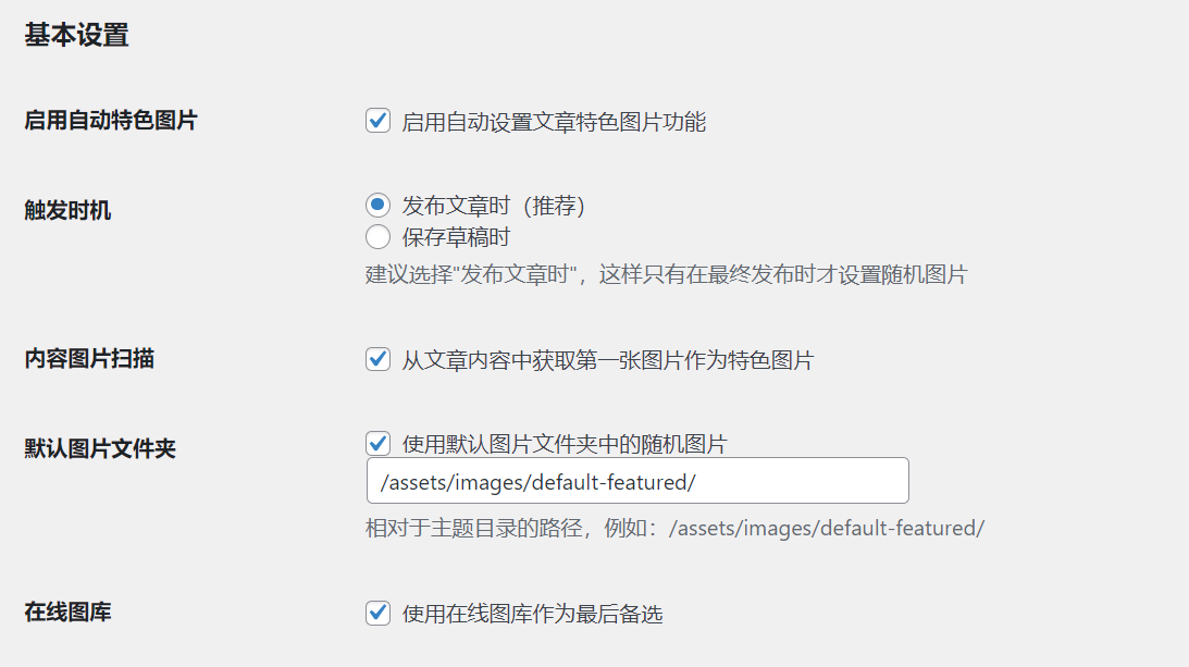 这个功能可以自动为您的文章设置特色图片。当您发布文章时,如果忘记设置特色图片,系统会智能地为您选择一个合适的图片。